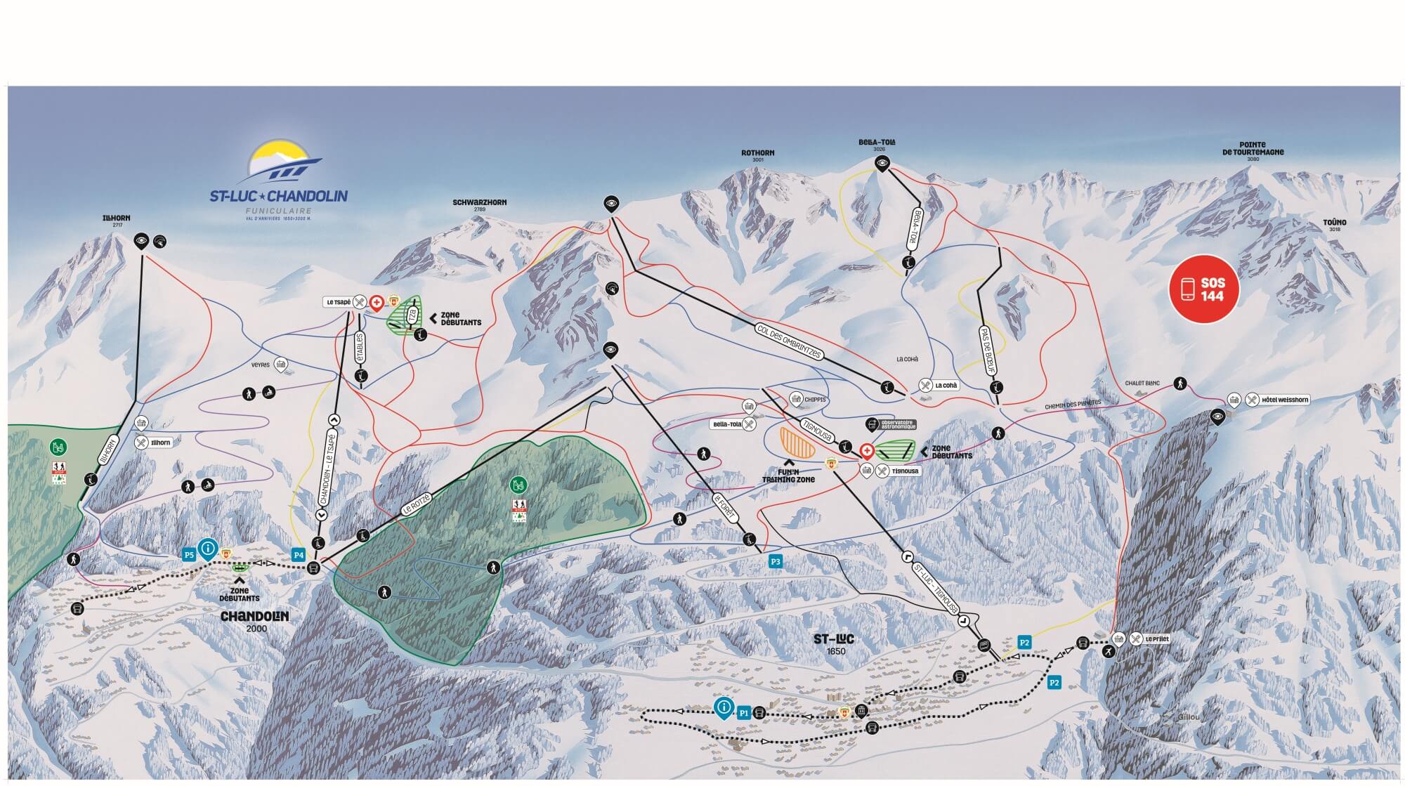 | Größe: | Das Skigebiet St-Luc - Chandolin besteht aus 65,0 Pistenkilometern, davon 35 leichten, 20 mittleren und 10 schweren Pistenkilometern. |