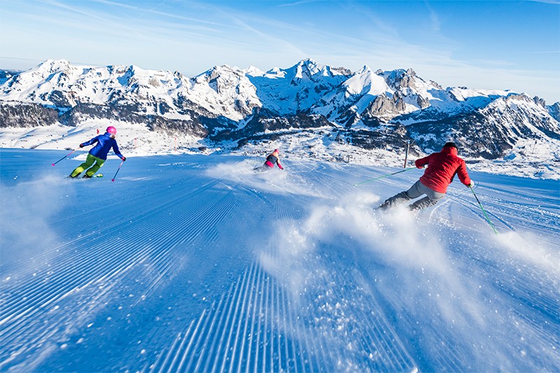 Vor der Kulisse der sieben weissen Churfirsten und des mächtigen Säntismassivs glitzert die tief verschneite Winterlandschaft in der Sonne. Hier unberührte, in eine dicke Schneedecke verhüllte Natur, dort frisch präparierte, weite Pisten mit Panoramaweitsicht. Ein Anblick, der verzaubert. Das Toggenburg ist allein dank Natur und Topographie ein wahres Schneesportparadies. Herz der Region sind die Skigebiete im oberen Toggenburg, Wildhaus-Gamserrugg und Chäserrugg-Unterwasser-Alt St. Johann, wo sich alles um den Wintersport dreht. In Wildhaus eröffnet sich ein große Übungsgelände für Anfänger und Wiedereinsteiger. Hier ist alles für Familien ausgelegt, während sich gleich nebenan die Freestyle-Fahrer im Funpark Snowland.ch austoben. Rund um den Chäserrugg umfasst die Pistenvielfalt alles für Geniesser. Lange und einzigartige Abfahrten durch idyllische Landschaften und atemberaubende Aussichten verzücken das Schneesportherz. In den weiteren kleinen und feinen Gebieten im mittleren und unteren Toggenburg stehen Wintersportlern pulsiert das Pisten-Leben etwas gelassener an den Skiliften und sanften Hängen. Insgesamt stehen im Toggenburg rund 80 km Pisten jeden Anspruchs zur Verfügung. Dazu laden eine Curlinghalle, ein Eisfeld, 190 km Winterwander- und Schneeschuhwege, 15 km Schlittelpisten und 50 km Langlaufloipen zum aktiven Wintergenuss abseits des Pistenrummels ein.