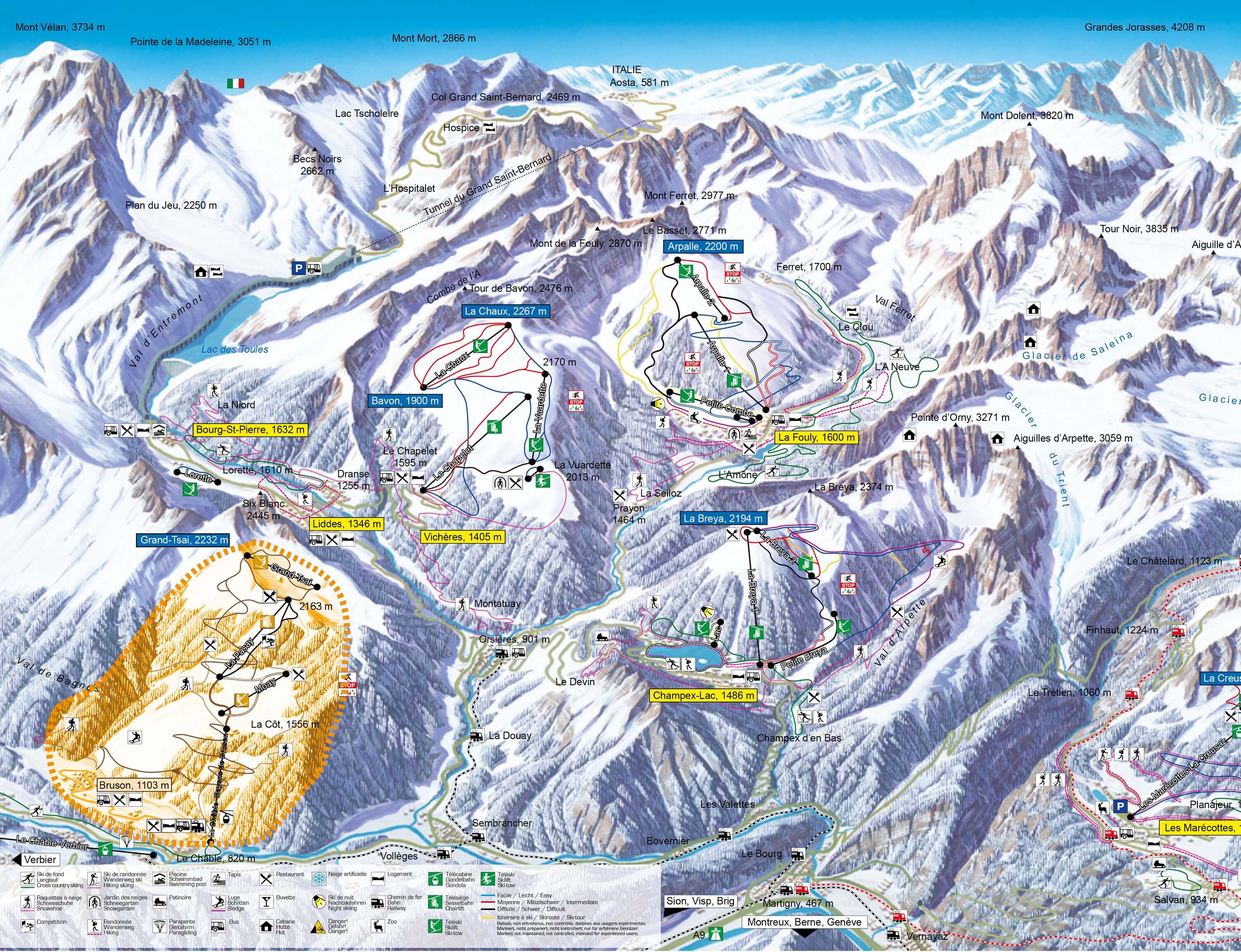 | Größe: | Das Skigebiet Vicheres - Liddes besteht aus 17,0 Pistenkilometern, davon 7 leichten, 7 mittleren und 3 schweren Pistenkilometern. |