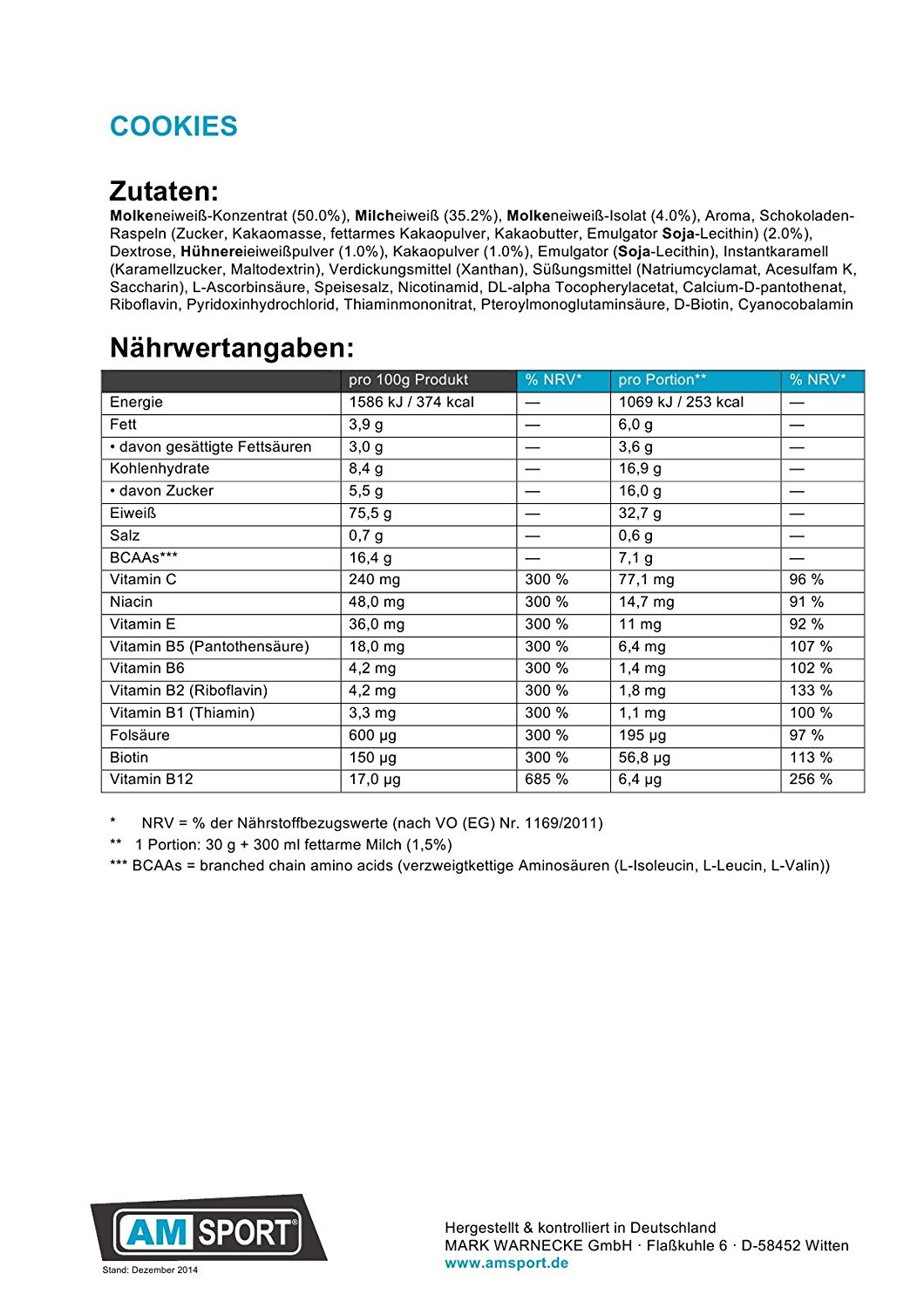 Das betrifft einerseits den hervorragenden Geschmack (bisher nur Cookies probiert) und auch die Nährstoffe und Konsistenz des Produktes. Das Pulver ist perfekt löslich.