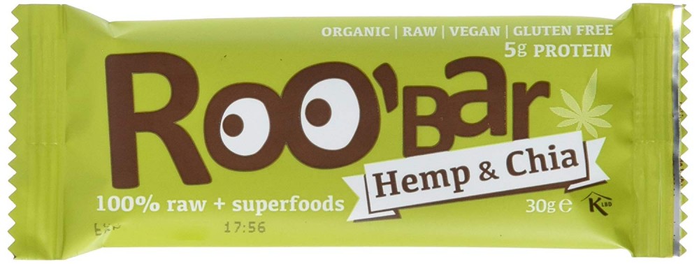Der Roo'Bar Hemp Protein-Riegel ist ein veganes und glutenfreies Rohkost-Superfood.