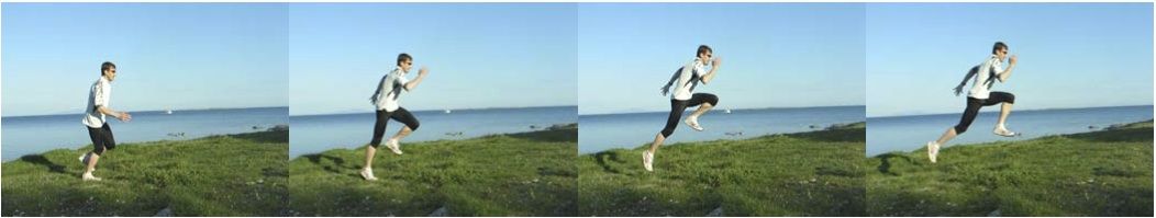 Der Sprunglauf zählt zu den körperlich anspruchsvollsten Übungen der Laufschule. Einem kraftvollen Fußabdruck folgt ein möglichster weiter Sprung des Beins nach vorne.
