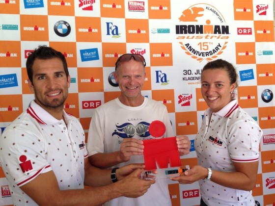 Dem nunmehr rechtmäßigen Altersklassen-Sieger Reinhold Garnitschnig (55) wurde von Dokter und Frank heute der Pokal für den ersten Platz in der Altersklasse M55-59 überreicht. Am 12. Oktober startet Garnitschnig damit erneut als regierender Altersklassen-Champion des IRONMAN Austria in das Abenteuer Hawaii.