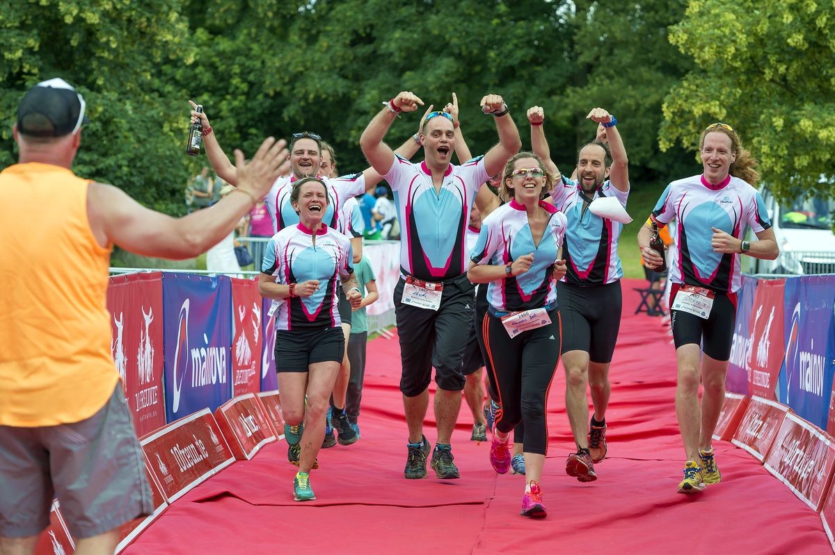 10 Freunde teilen sich die legendäre Ironman Distanz und trinken danach bei lockerer Live Musik ein oder zwei Bierchen während ihre Kinder sich auf der Hüpfburg, beim Kinderschminken oder dem kostenfreien FITKIDS Event amüsieren :-D10 FREUNDE = 1 TEAMJeder