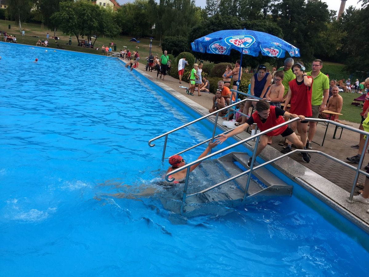 Die Volkssportveranstaltung treibt Jung und Alt zu sportlichen Höchstleistungen. Die Teams bestehen dabei aus drei Personen in drei Altersklassen. Gestartet wird auf einem Rundkurs, der sich aus 4x 4km Radfahren, 5x 100m Schwimmen+ Rutsche und abschließend 4x 1km Laufen zusammensetzt. Mit Beenden des Triathlons endet auch unsere Freibadsaison.