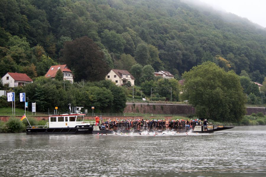 Top Organisation durch die DLRG, witziger Kommentator. 700 Meter flussabwärts im Neckar vom Ponton aus, Wechselzone auf der Wiese vor dem Freibad mit ausreichend Platz, Radstrecke mit einigen Höhenmetern auf guter Straße mit ein paar Kurven, man wird mit langer Abfahrt auf dem Rückweg nach dem Wendepunkt belohnt. Laufstrecke 3 km am Neckar entlang, gleiches zurück.