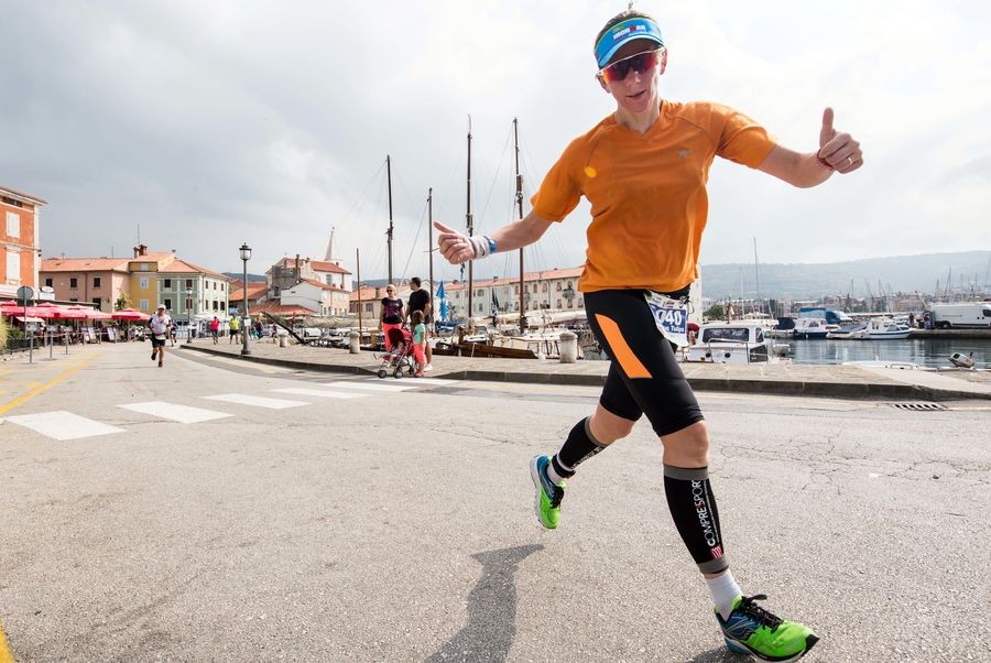Eine 21,1 Kilometer lange Zwei-Runden-Laufstrecke schließt das Rennen ab. Der Kurs führt durch das Zentrum von Koper, entlang der Küstenstraße nach Izola und zurück. Die Laufstrecke ist flach und der höchste Punkt liegt nur 5 Meter über dem Meeresspiegel. Die Finishline befindet sich an der Promenade von Koper direkt neben dem Meer.