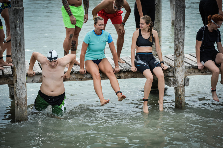 750 m Schwimmen (Neusiedlersee: Wassertiefe 140 cm) – 3 Hindernisse